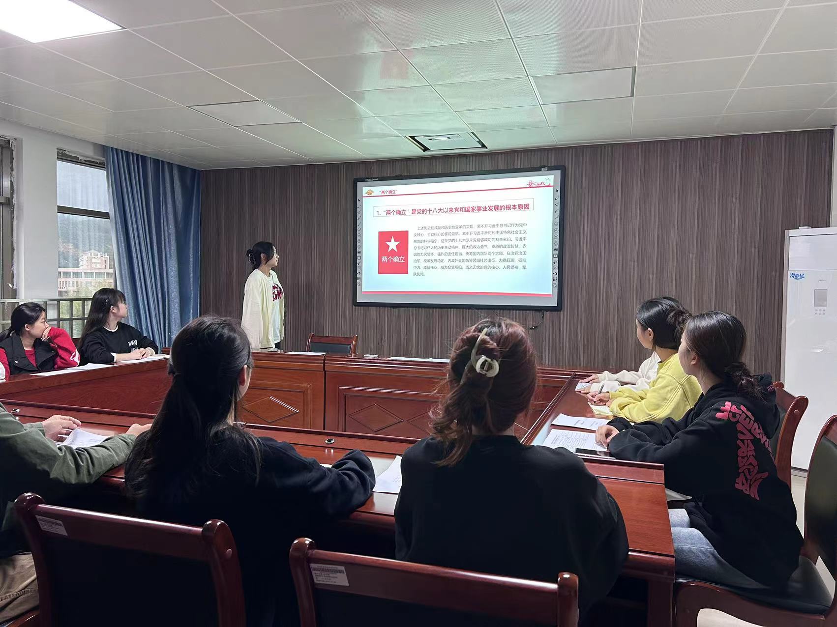 为引领院学生会广大团员和青年认真学习领悟习近平新时代中国特色社会主义思想,凝聚起建设中国式现代化的蓬勃力量,全面贯彻落实党的二十大精神,引领青年深刻把握“两个确立”,坚决做到“两个维护”,把个人发展融入中华民族复兴的伟业之中。2023年10月27日,院学生会、团委综合办团支部联合开展“坚强核心”专题学习会。
