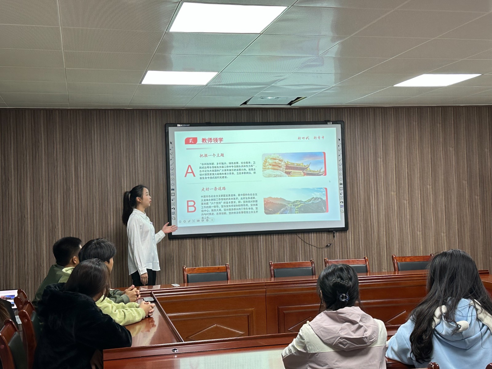 学习会上,围绕“强国复兴”主题,院团学干部代表柯亚敏领学了党的二十大关于全面建成社会主义现代化强国,以中国式现代化全面推进中华民族伟大复兴的战略部署。