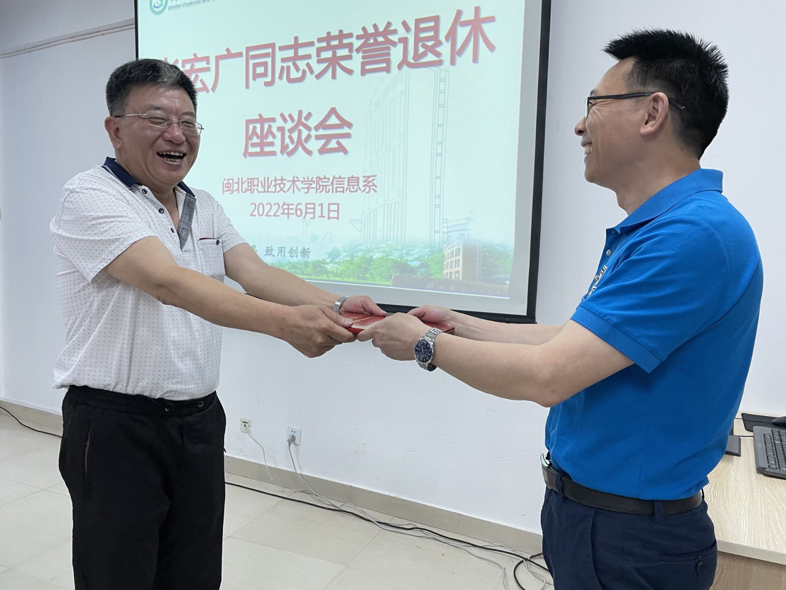 6月1日下午,在行政办公楼407会议室,我系举行了一场温馨而又隆重的退休欢送会,院工会、人事处领导及系党政领导和教师代表齐聚一堂,欢送退休教师张宏广老师。