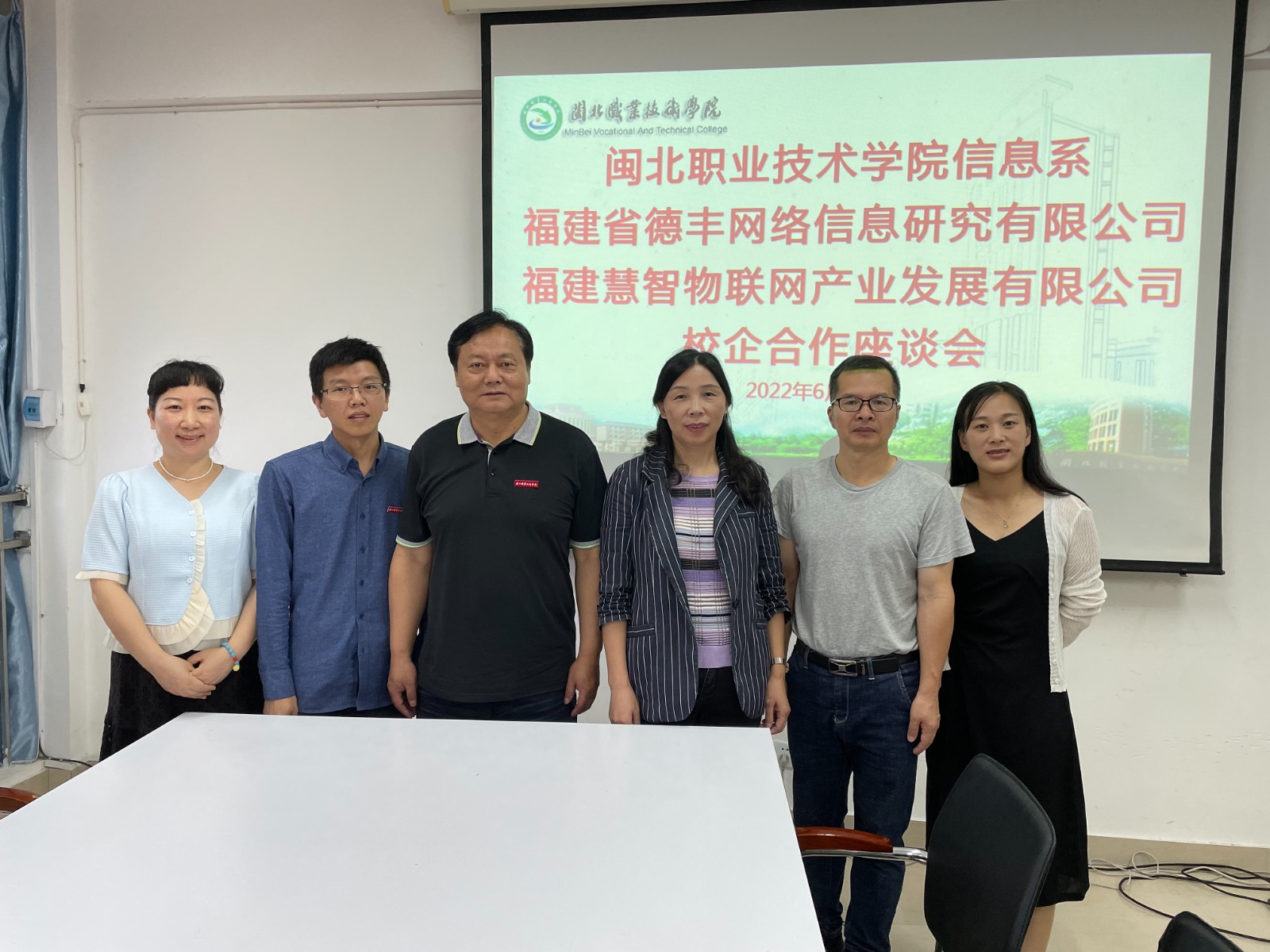 2022年6月17日,信息系与福建省德丰网络信息研究有限公司、福建慧智物联网产业发展有限公司2家企业,在行政楼407会议室召开校企合作座谈会。学院党委书记谢友平、信息系主任张金良、信息系校企合作办、专业骨干教师代表参与了座谈会。