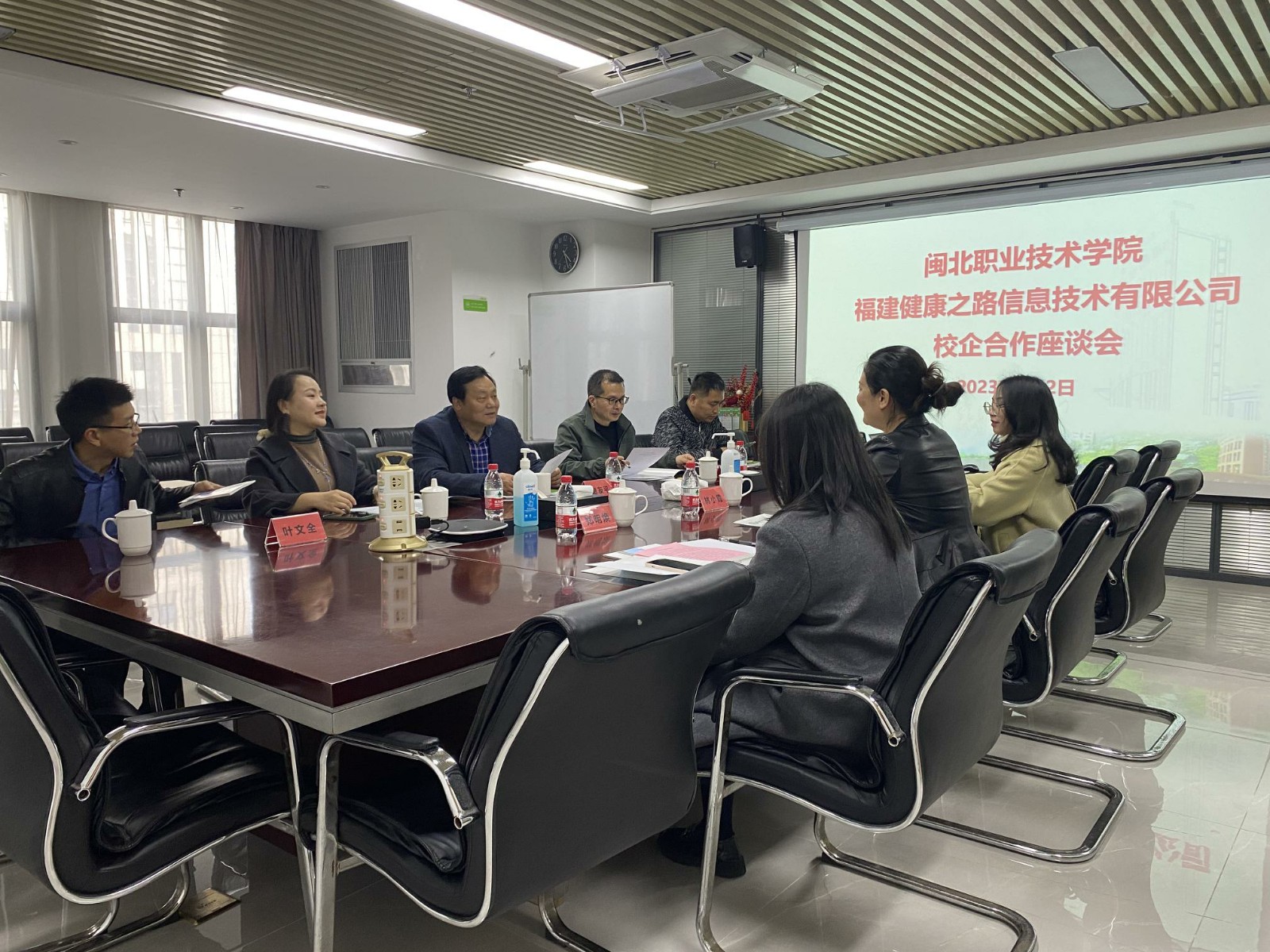 福建健康之路信息技术有限公司是一家“互联网+医疗健康”企业。福建健康之路信息技术有限公司副总裁林小霞对调研组一行的到来表示欢迎,随后召开校企合作座谈会,副总裁林小霞、人事行政总监江琴、政府事务部经理廖花参加了座谈会。调研组一行听取了林小霞副总裁的介绍,详细了解了企业对软件测试、公众号运营、数字健康营销的人才需求,听取了企业对人才培养的建议,并就校企资源共享、科技创新、学生实习实训等问题进行交流。
