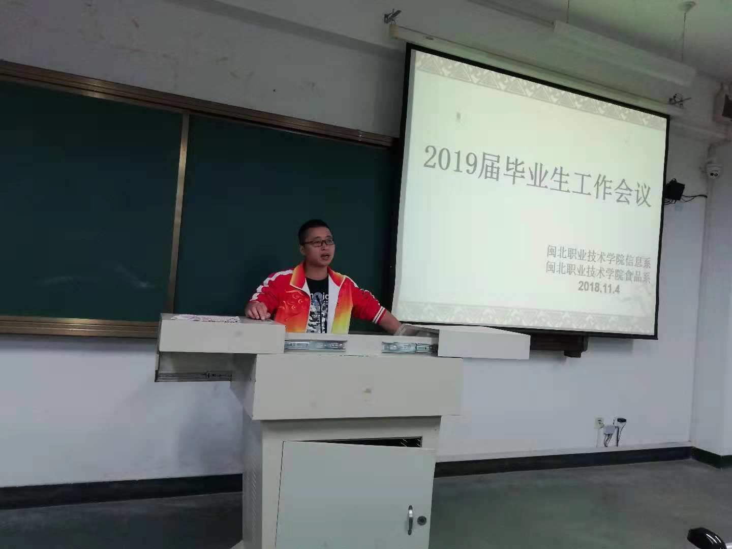 2018年11月4日晚,我系在教学楼205教室召开2019届全体毕业生工作会议。会议就毕业生后续行程安排、档案填写、就业协议书签订、实习单位选报、党团组织关系转移等进行了详细的讲解说明,并对各项任务提出具体要求。本次会议的召开,使我系2019届毕业生进一步明确了顶岗实习期间的各项任务及意义,为顺利完成顶岗实习任务做好充足准备。