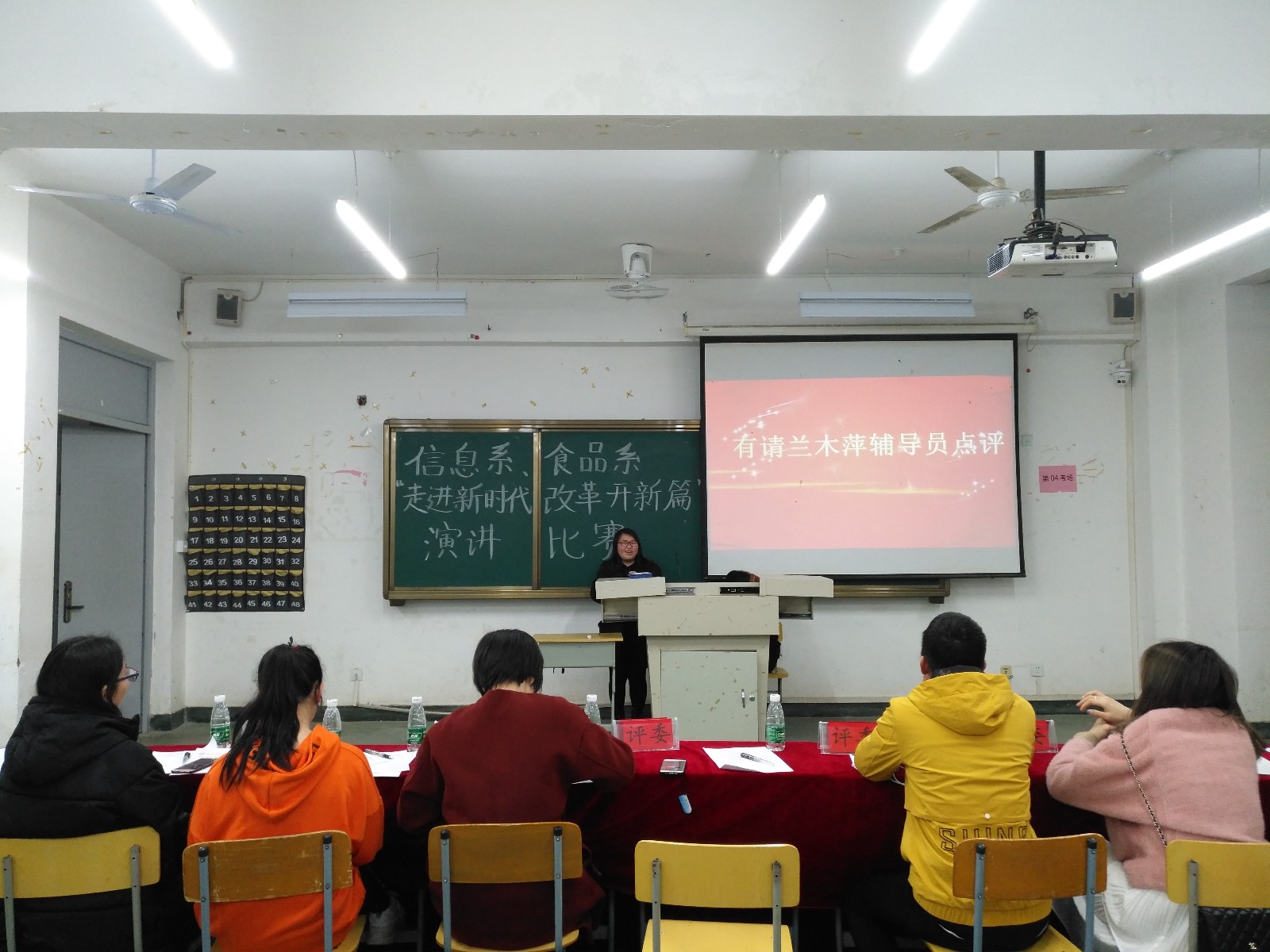 2019年4月3日晚,我系在教学楼106室举办了“走进新时代改革开新篇”主题演讲比赛,系辅导员兰木萍、江晓洁出席演讲比赛并担任评委。