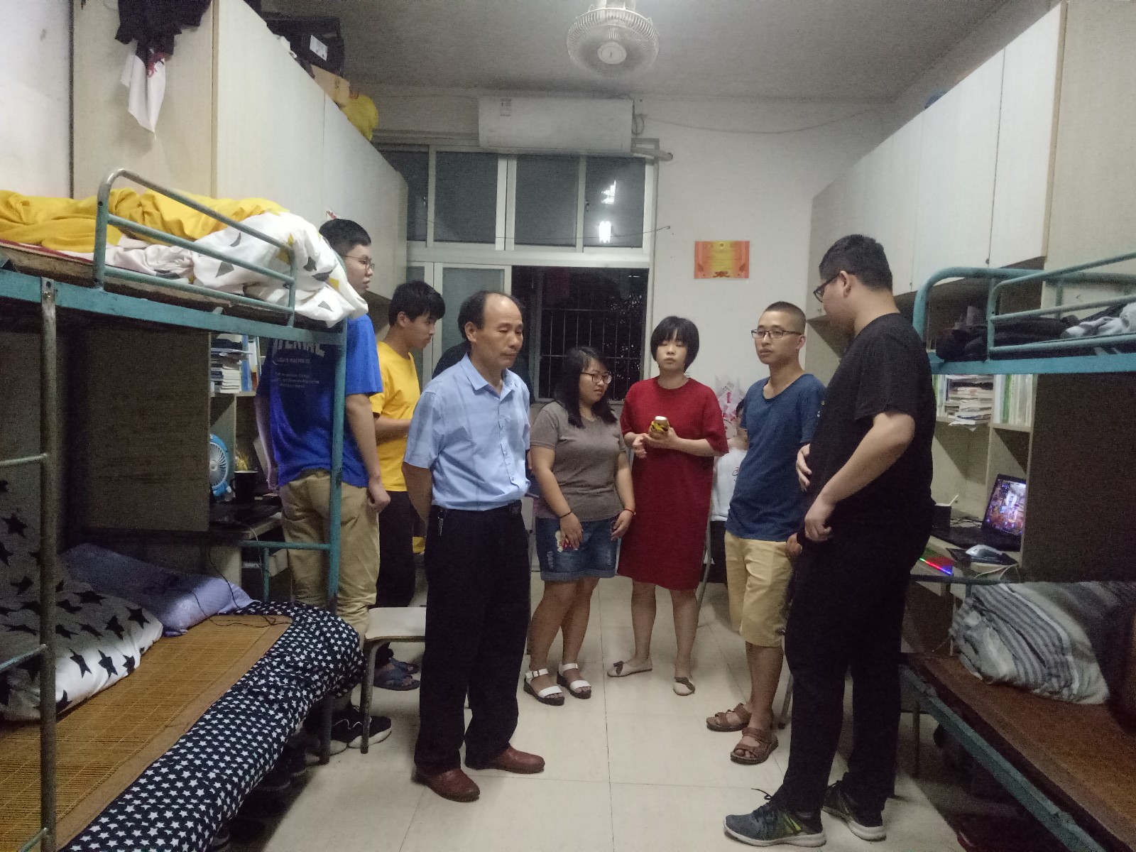 为进一步了解同学们的生活环境,提高学生的安全意识,5月27日晚,系常务副书记郑启阶同志一行走访了我系学生宿舍。