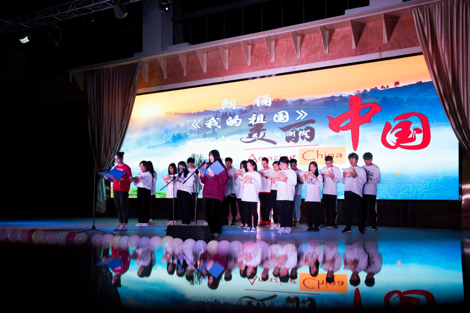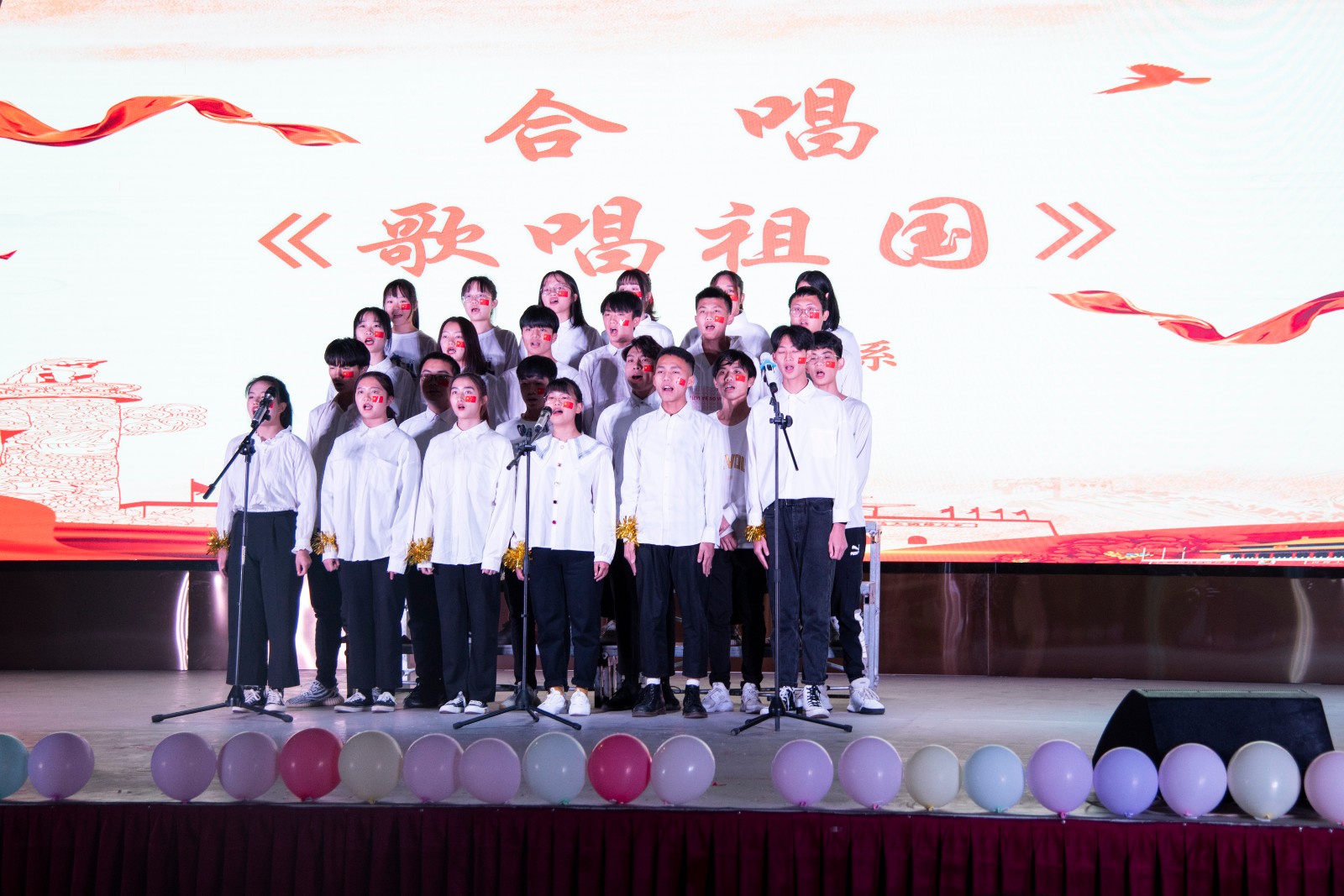 晚会在江南声乐队带来的歌曲《我和我的祖国》中拉开帷幕;随后集体朗诵《我的祖国》、歌曲《映山红》等节目在舞台上依次演出,无不展示了同学们的拳拳爱国之心。神秘的魔术《花叶言》及小品《四大才子》将晚会推向了高潮,全场欢呼不绝,掌声不断。最后,晚会在系学生会合唱的《歌唱祖国》中完美落幕。
