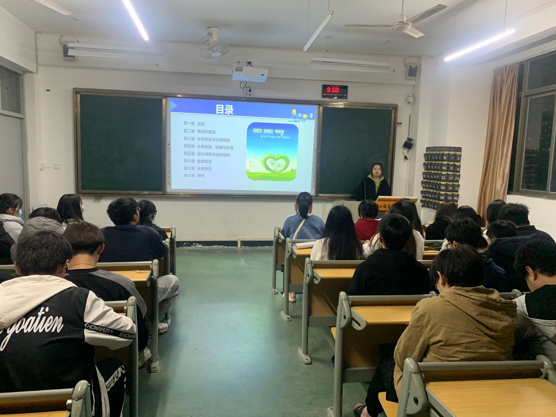 辅导员组织同学们共同学习了《南平市生活垃圾分类管理办法》,《办法》共八章,分别是总则,规划和建设,分类标准与分类投放,分类收集、运输与处置,源头减量与促进措施,监督管理,法律责任,附则。会上重点学习了与大家密切相关的“分类标准与分类投放”一章。