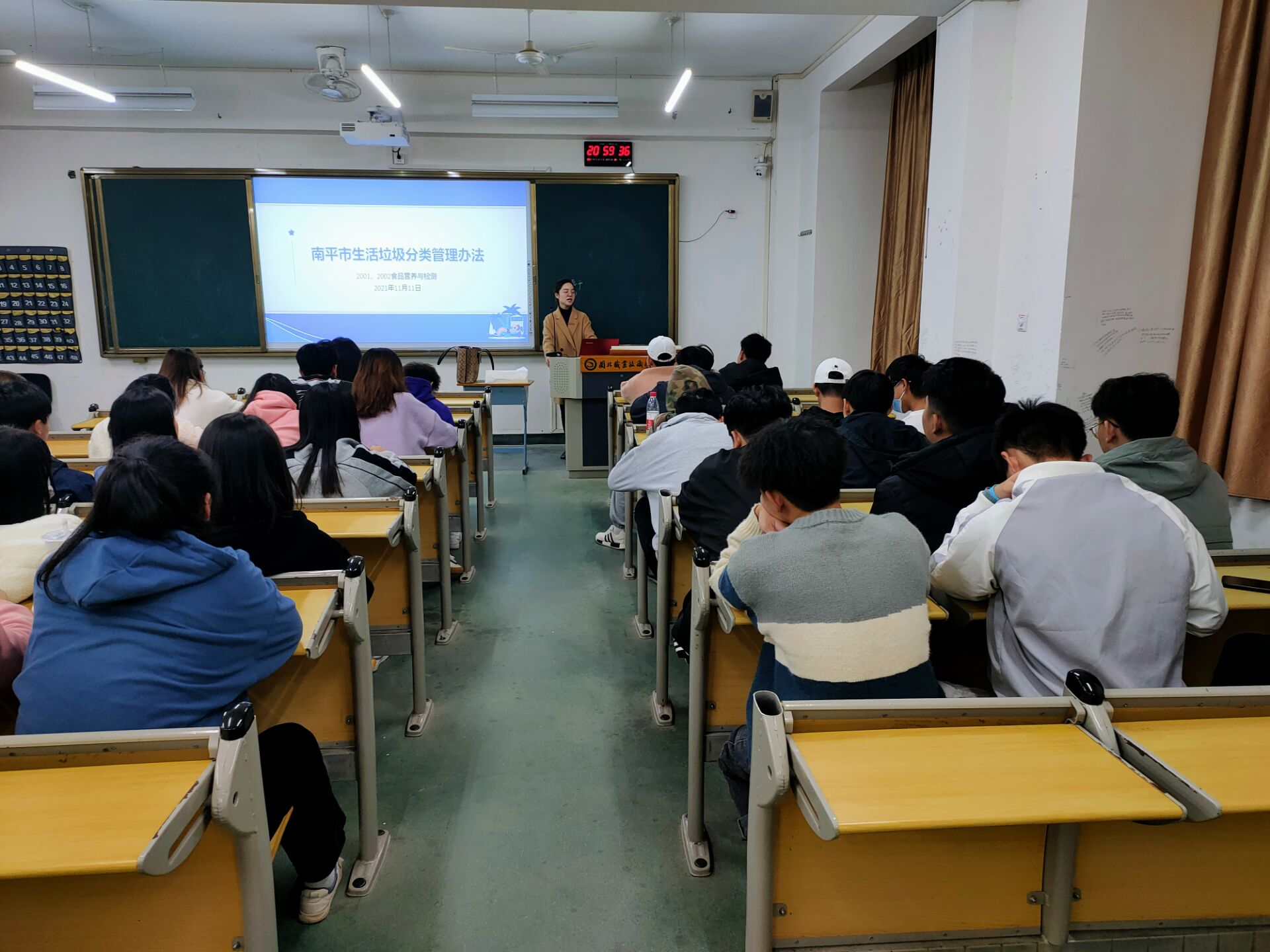 为积极贯彻落实南平市生活垃圾分类管理办法,加强生活垃圾分类管理,促进生活垃圾减量化、资源化、无害化,改善人居环境,促进生态文明建设和经济社会可持续发展,我系于第10周组织各班级开展“南平市生活垃圾分类管理办法”专题学习。