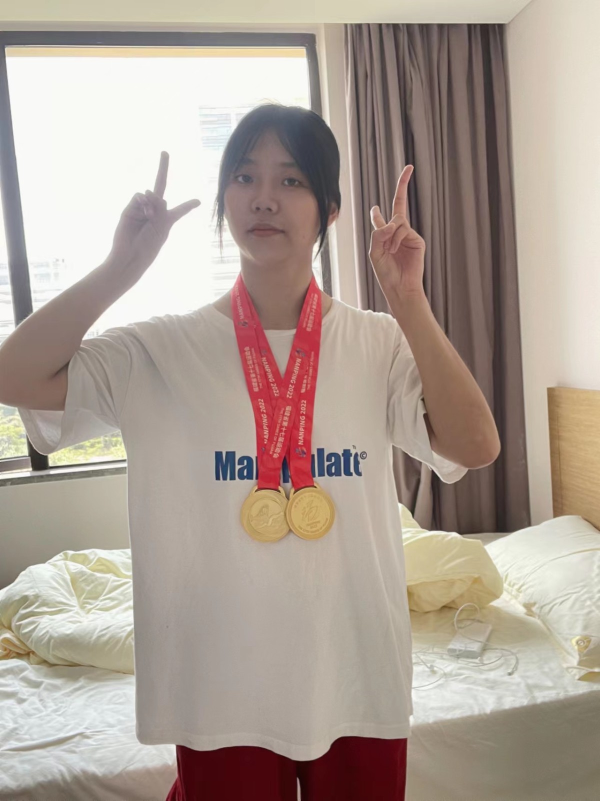 在经过紧张刺激的角逐,吴青霞同学于7月29日上午在女子丙组50米仰泳决赛中勇夺金牌,并在30日上午,在女子丙组50米蝶泳决赛中再传喜讯,以32秒24的优异成绩斩获蝶泳冠军。这也是其个人在本届省运会中,获得的第二枚金牌。