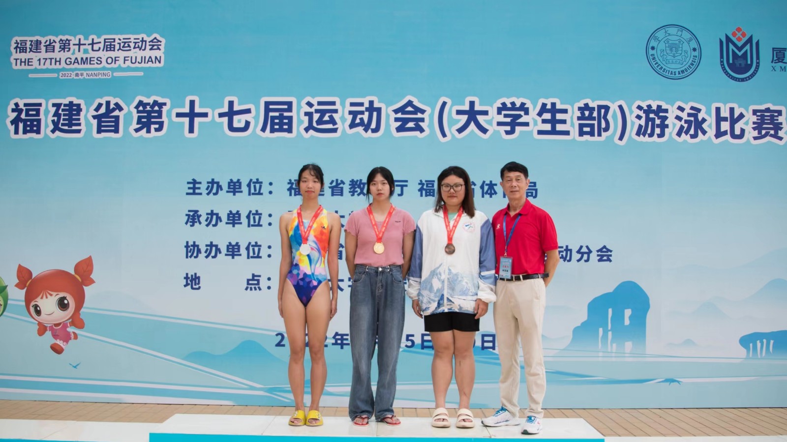 福建省第十七届运动会(大学生部)游泳比赛正如火如荼的进行中,游泳健儿们斗志高昂,势如破竹。信息系2021级计算机应用技术专业学生吴青霞代表学院出战此次游泳比赛。