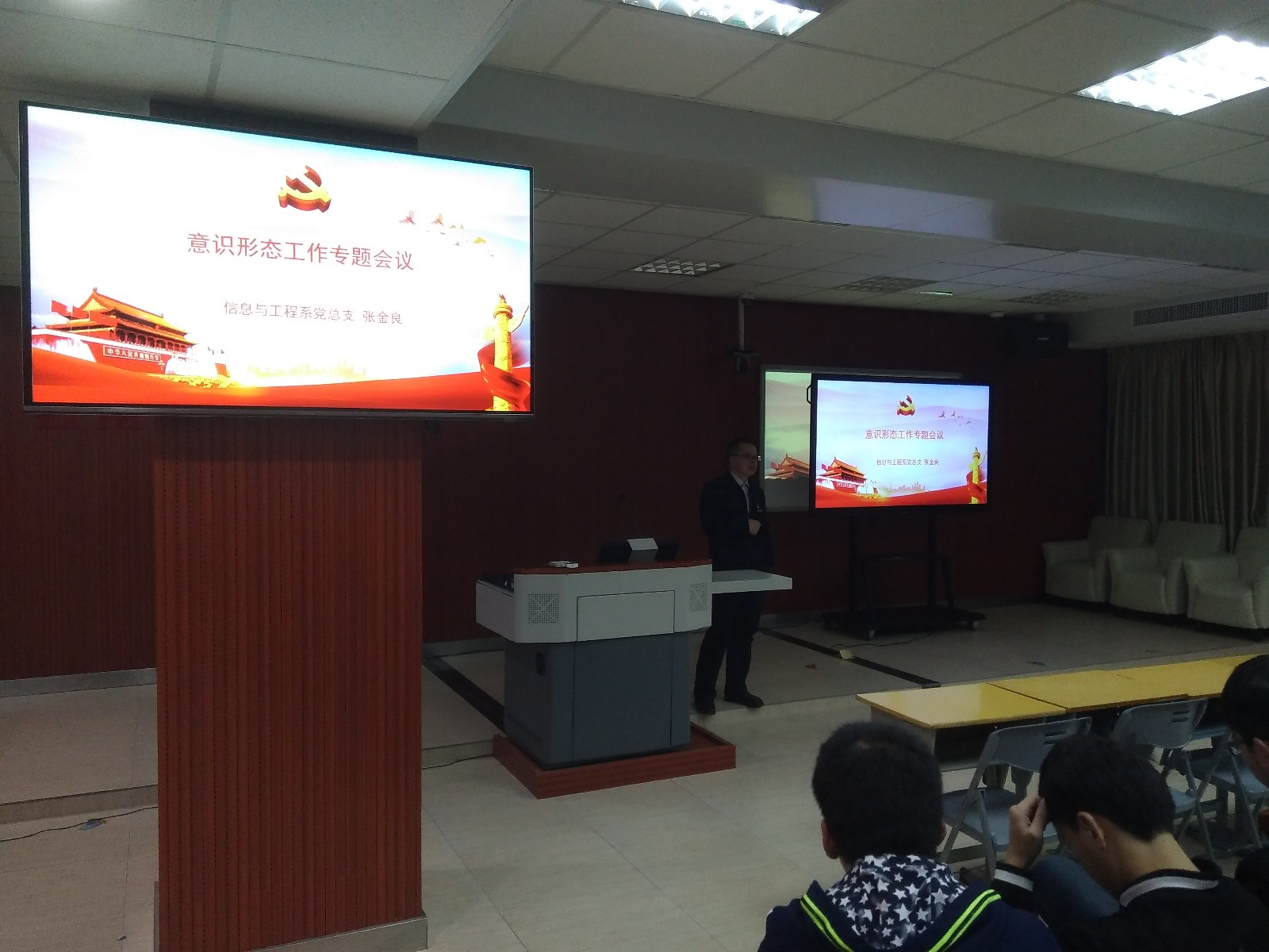 12月11日晚上,我系召开了意识形态工作专题会议,系主任、副书记张金良同志对2017级全体学生进行了思想意识形态专门教育。他围绕国内、国际的形势,对我国高校及Beat365当前思想意识形态工作进行了分析,指出了现阶段我系学生在思想意识形态方面存在的问题。张主任要求同学们时刻要保持清醒的头脑,始终要有强烈的政治意识,始终要坚持正确的舆论导向,积极向党组织靠拢,热爱祖国、热爱社会。