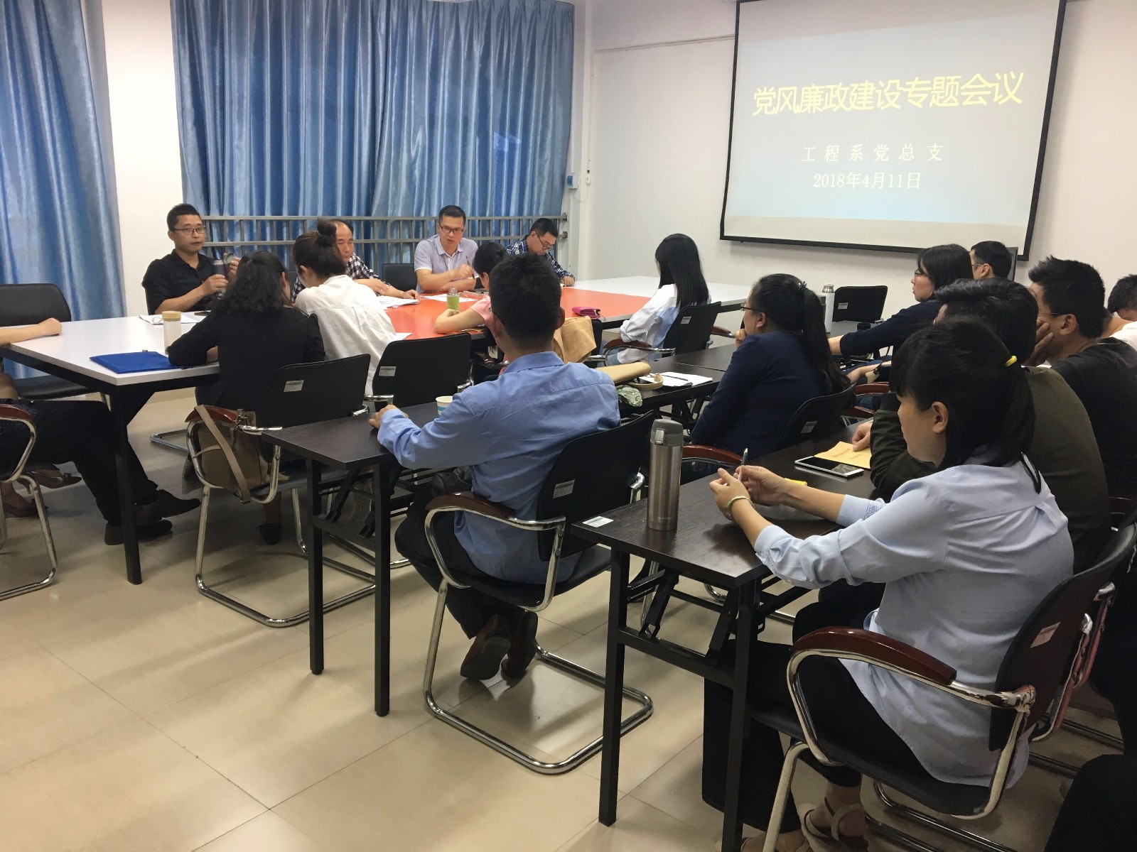 为深入学习贯彻十九大会议精神,进一步强化党总支党内监督,4月11日下午,我系党总支召开了党风廉政建设专题会议,全体教职工参加了会议。