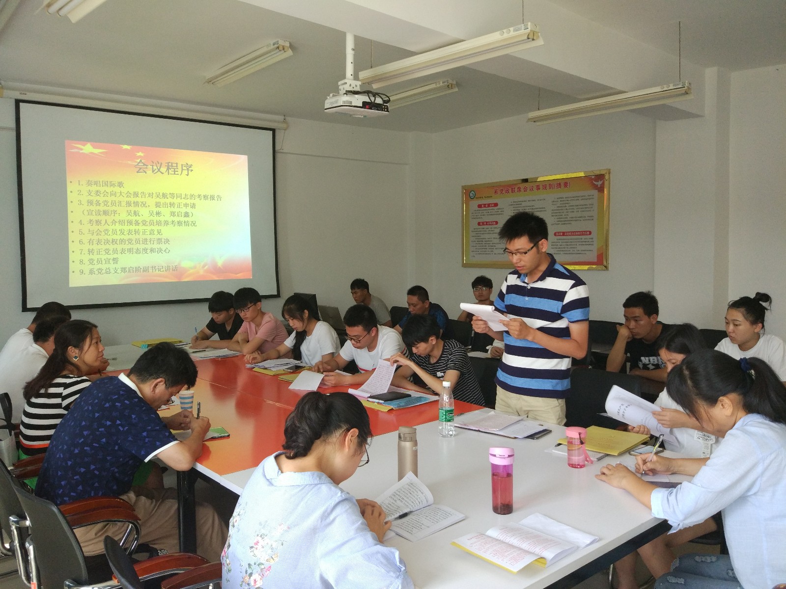2018年7月4日,工程系第二党支部在行政楼407室召开预备党员转正大会。参加此次会议的有工程系第二支部正式党员、预备党员,会议由支部书记胡建辉同志主持。