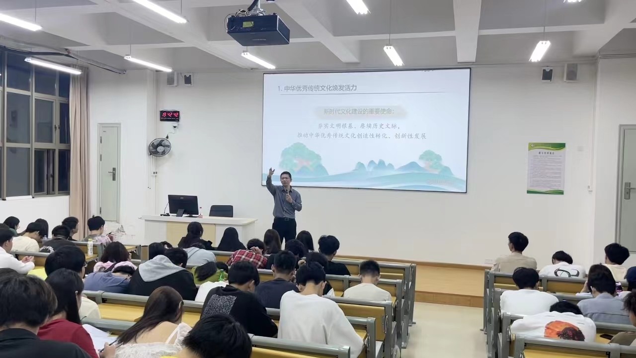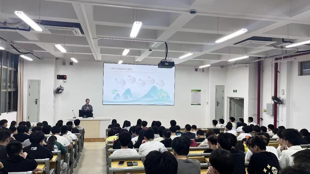 叶世森院长紧密围绕“历史悠久缔造中华文化”、“培根铸魂推动文化繁荣”、“笃定前行建设现代文明”三个角度,对大学生接续中华历史文化传承和创新展开详细的讲解,将优良传统文化发扬光大,丰富中国特色社会主义文化内涵,为社会主义文化事业添砖加瓦给予了厚望。