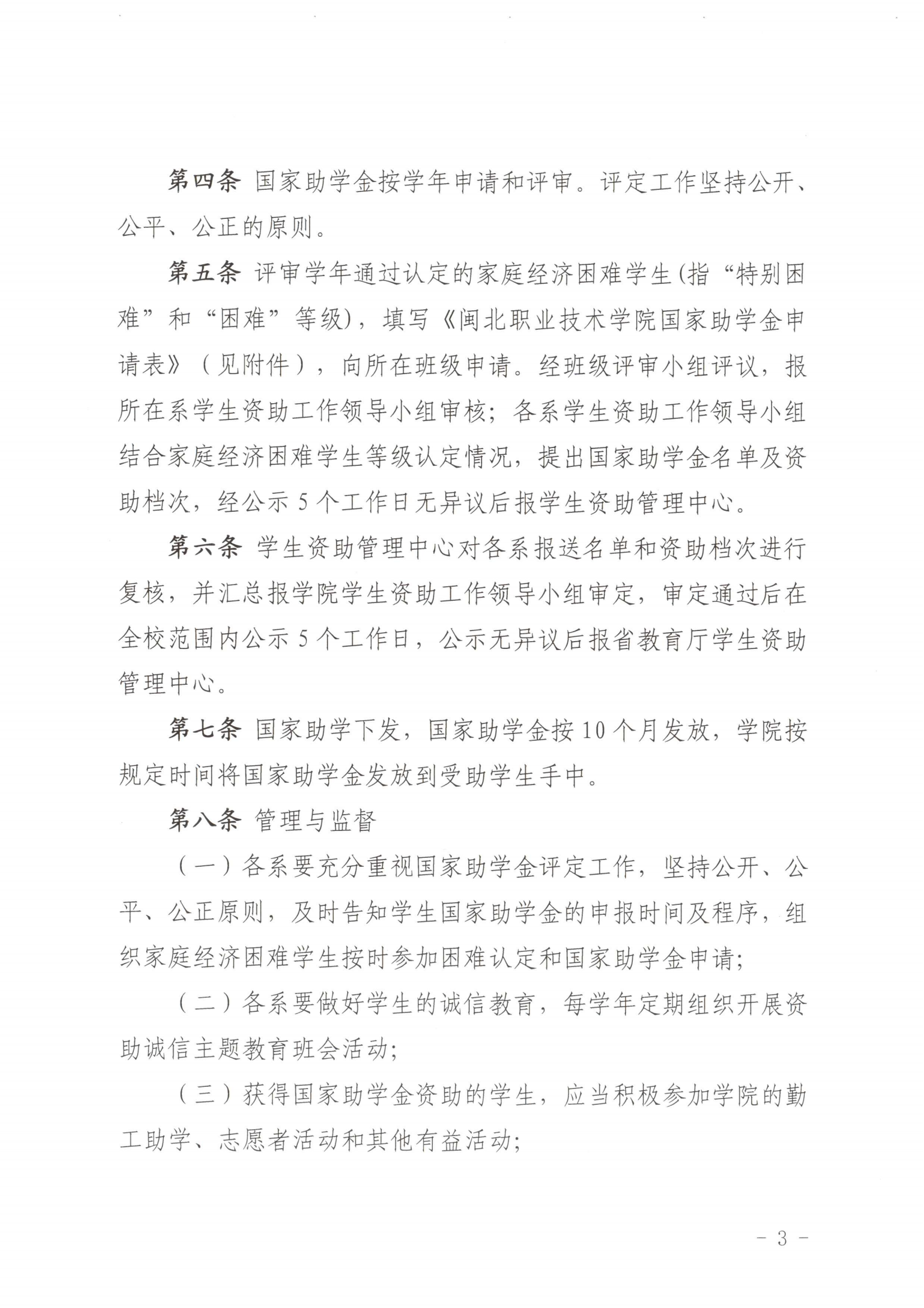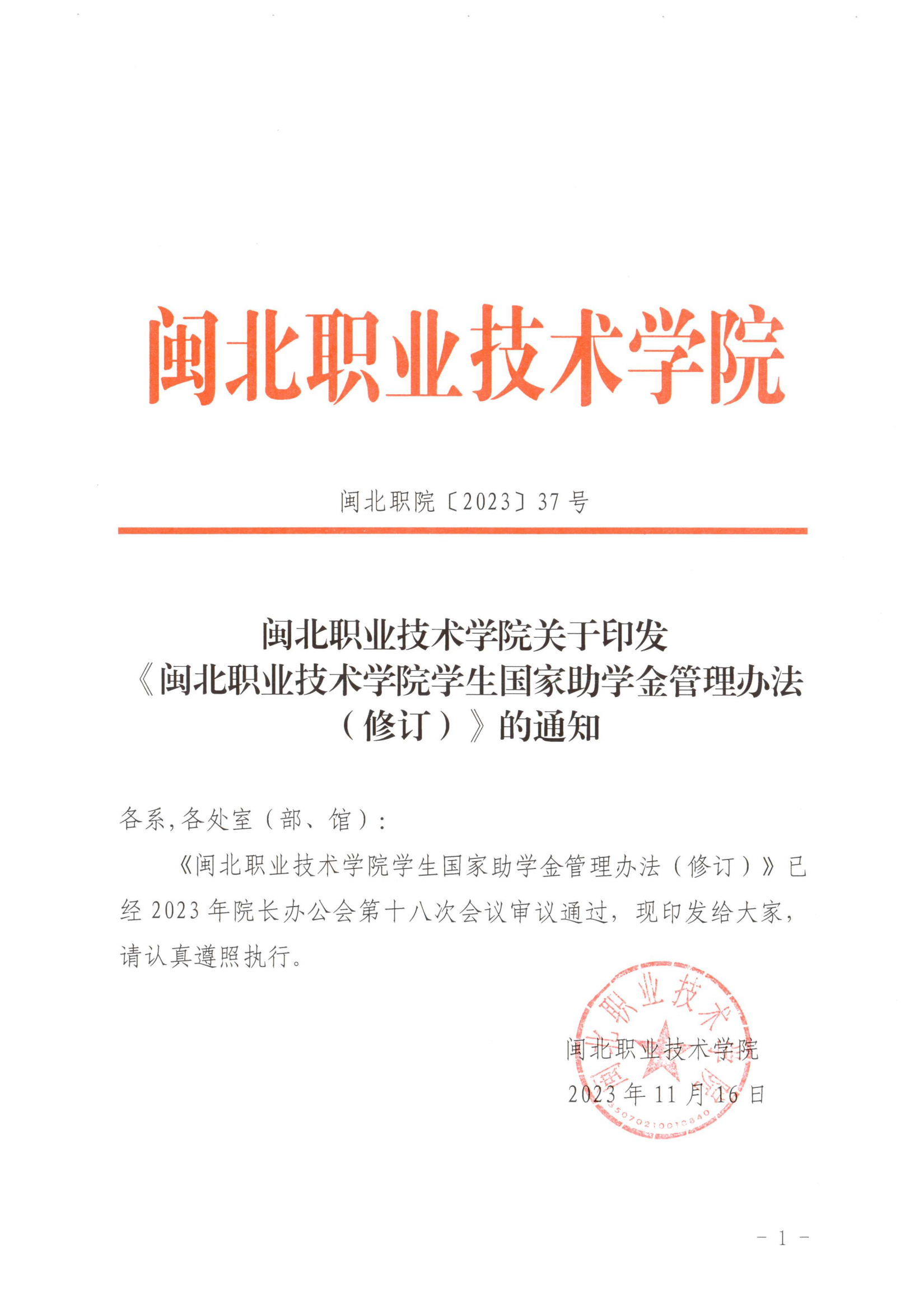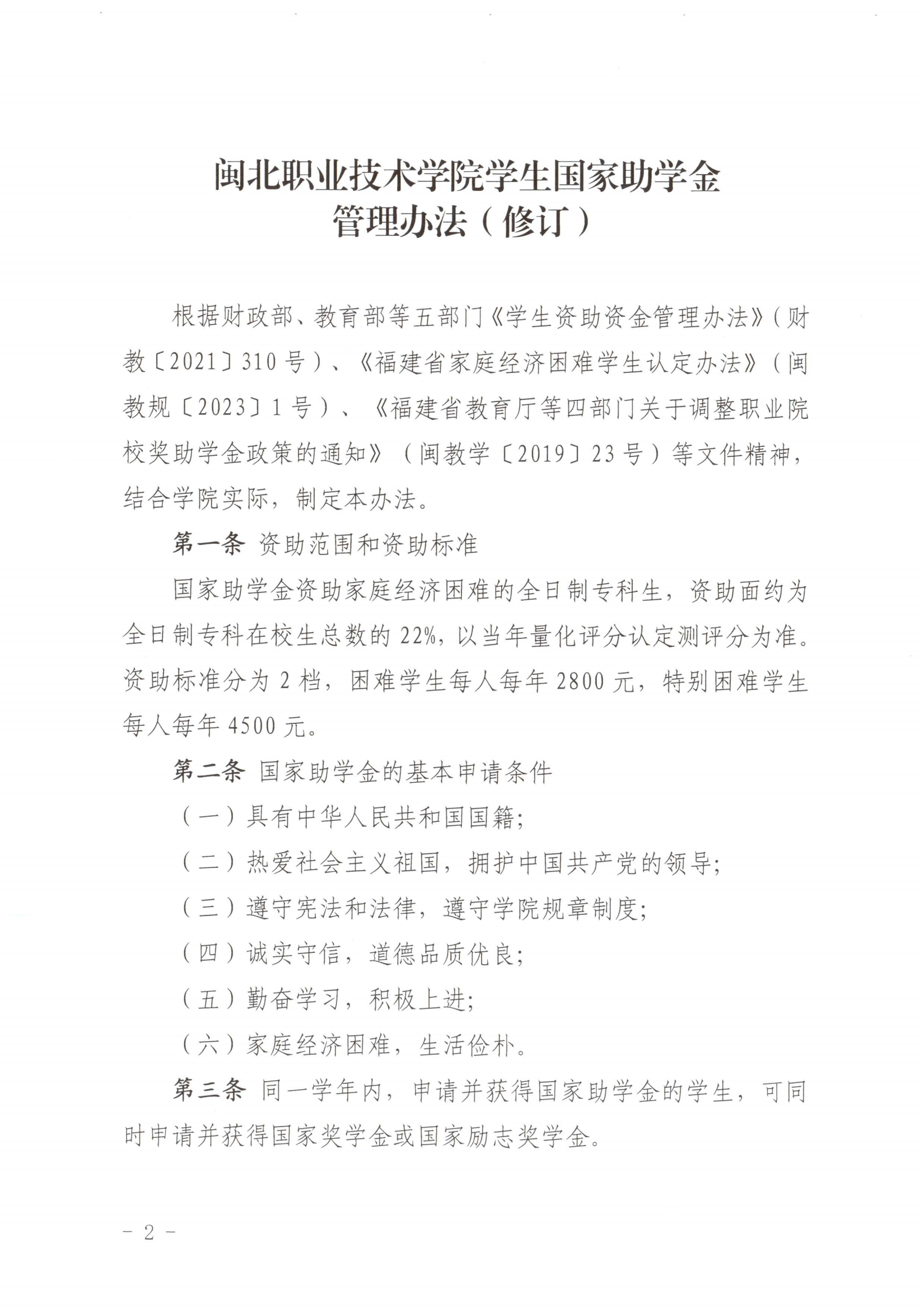 闽北职院〔2023〕37号 Beat365中文官方网站学生国家助学金管理办法(修订)