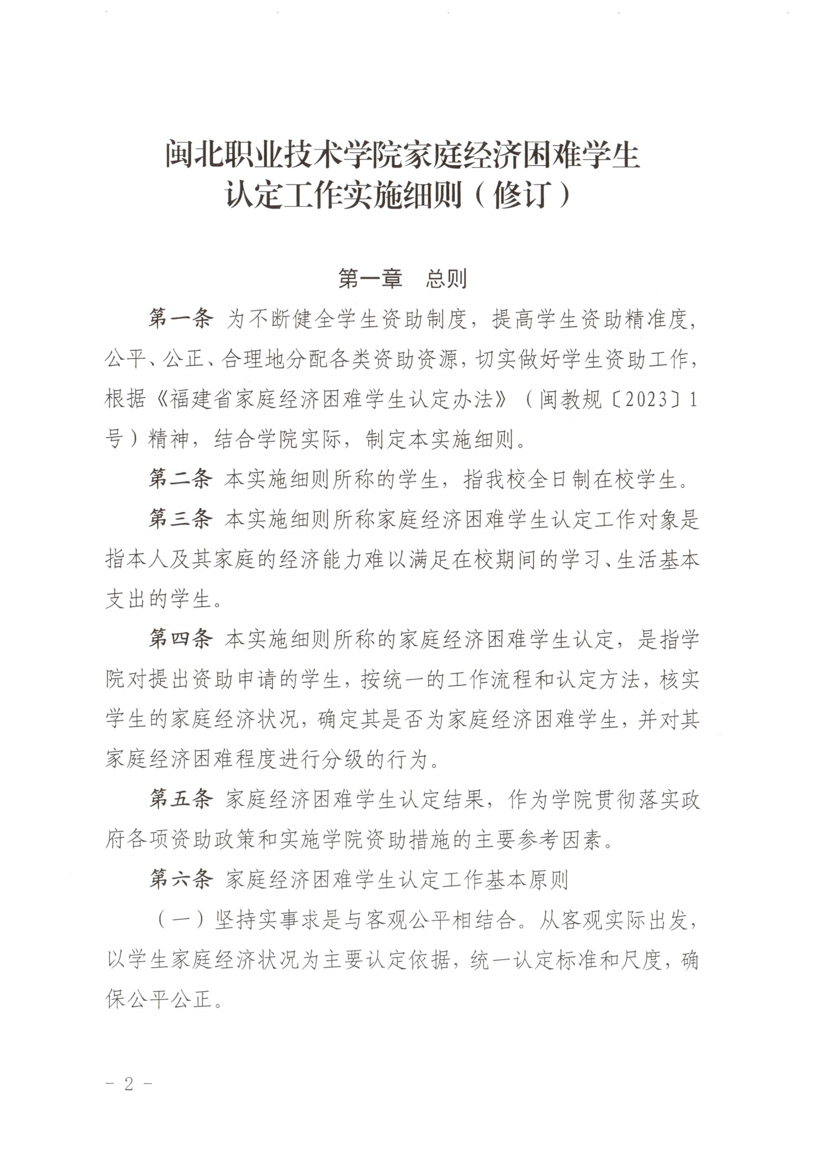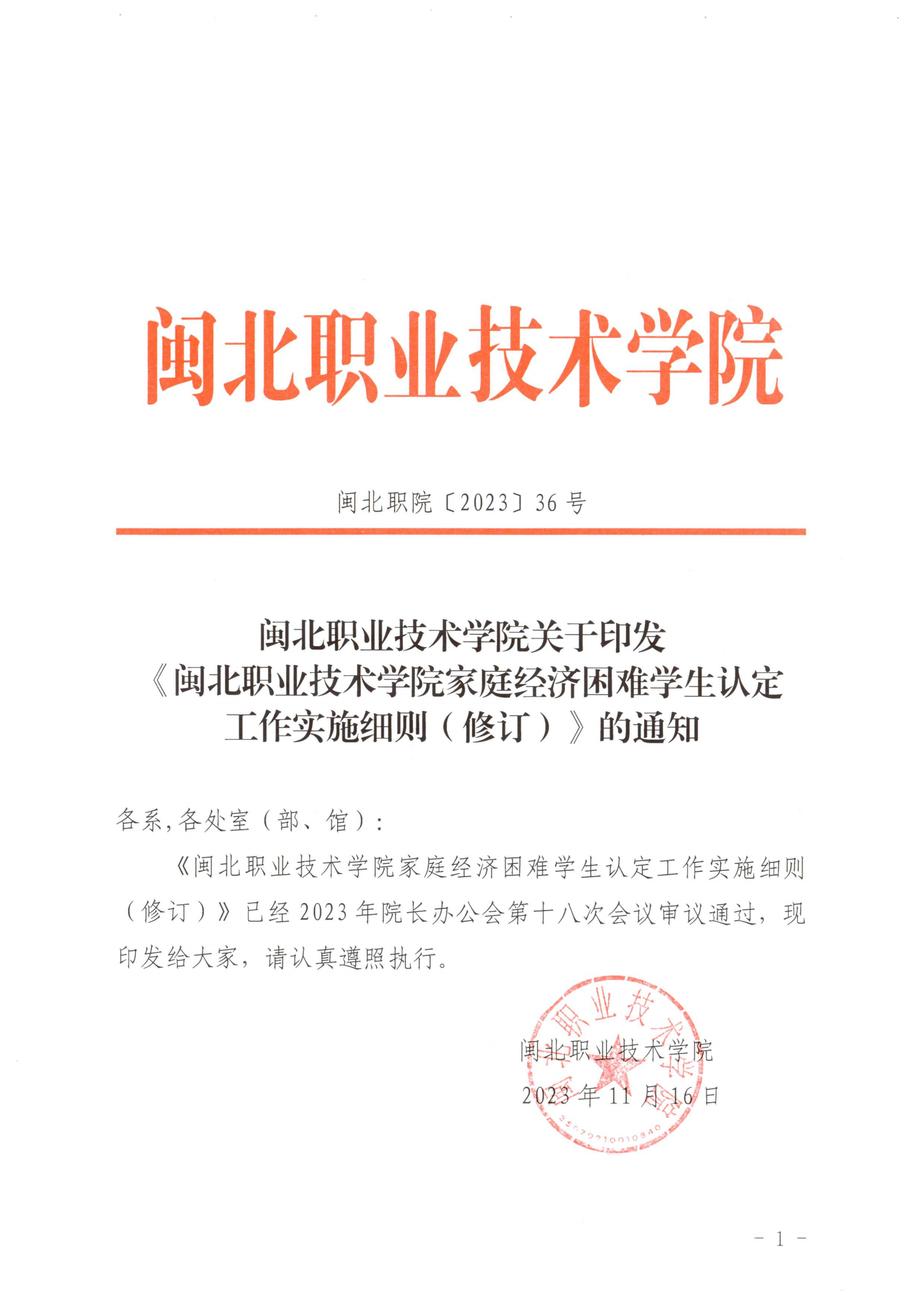 闽北职院〔2023〕36号 Beat365中文官方网站家庭经济困难学生认定工作实施细则(修订)