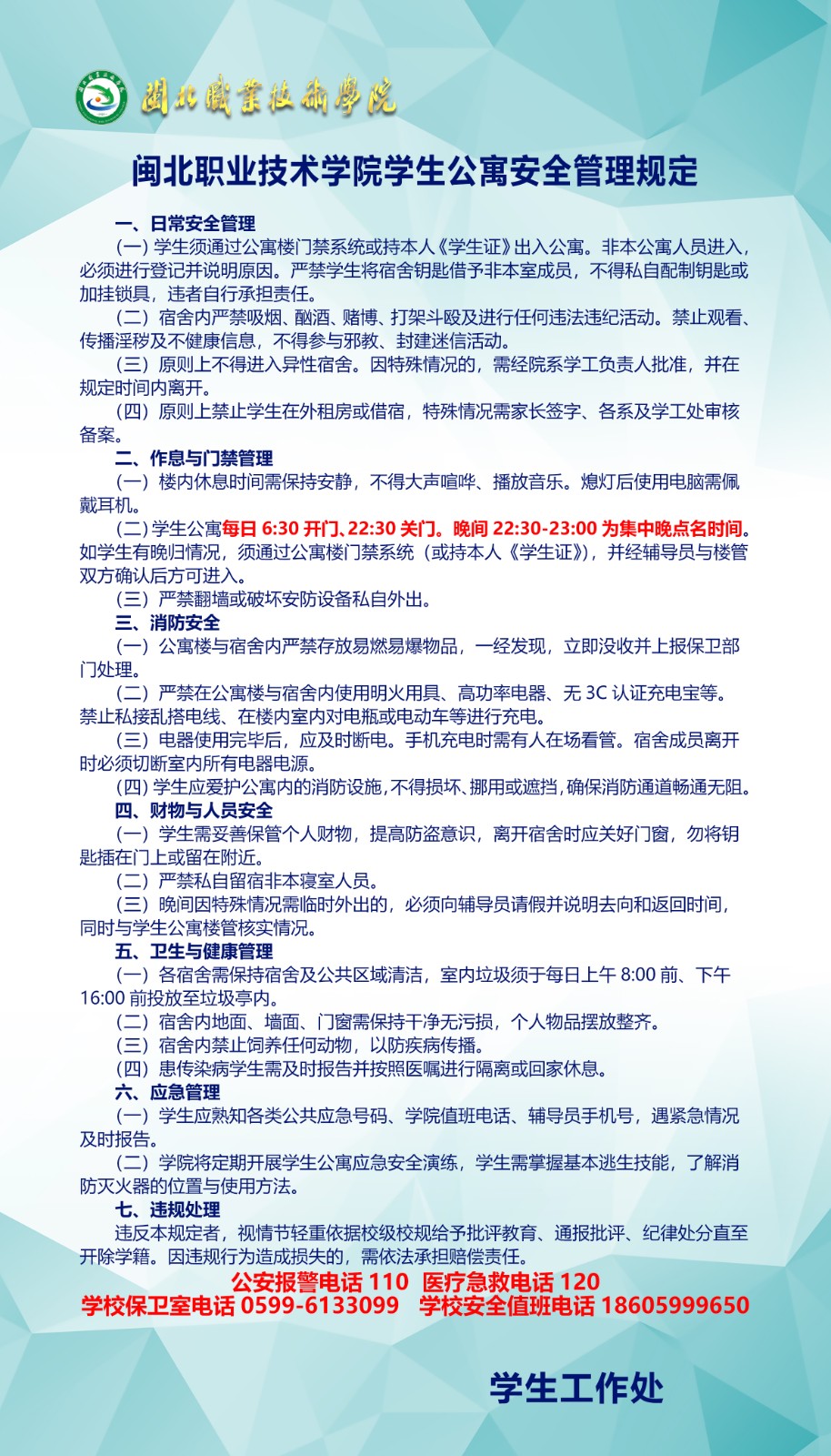 学院学生公寓安全规章制度(2025年版)
