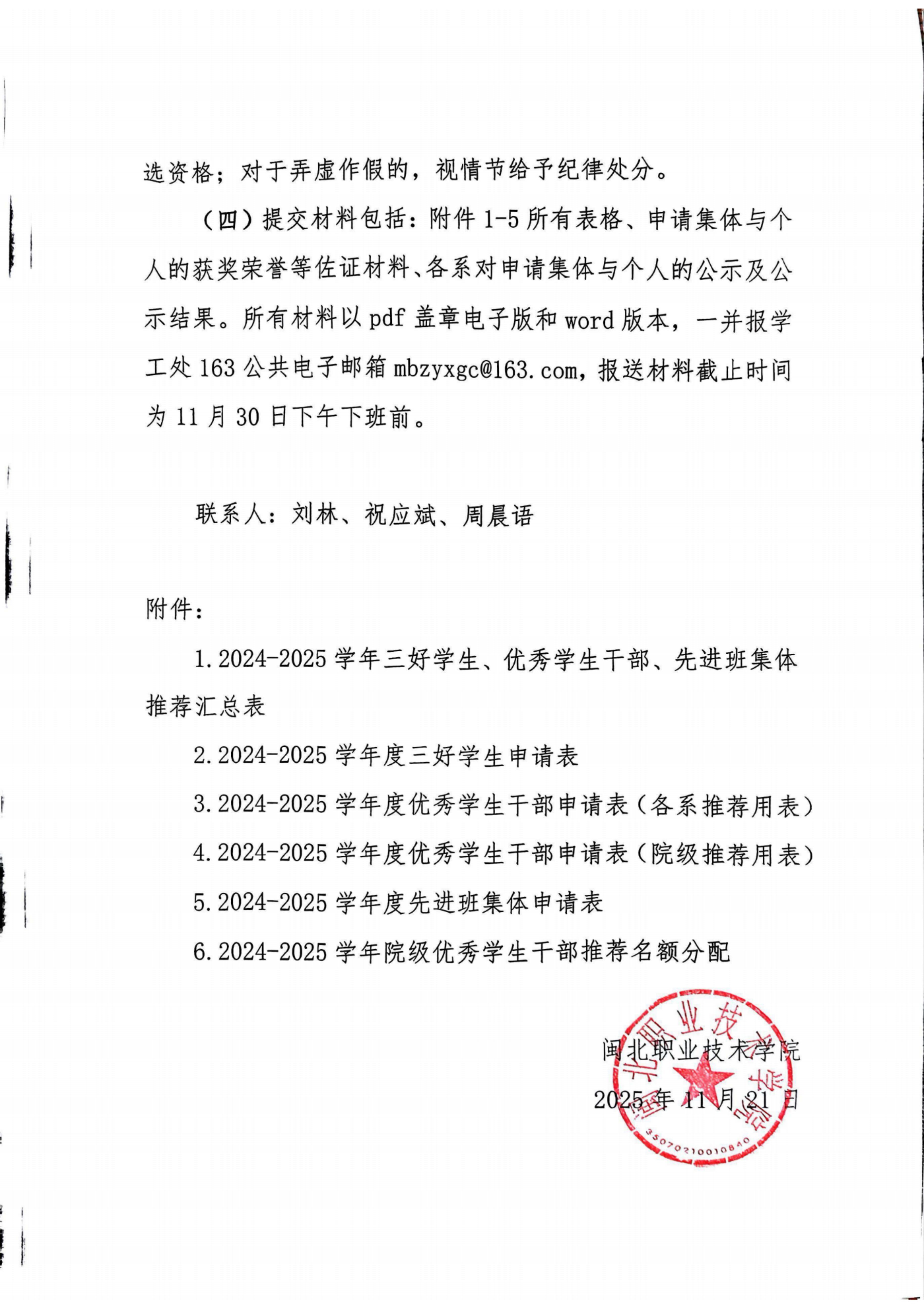 关于做好2024-2025学年三好学生、优秀学生干部及先进班集体评选表彰工作的通知