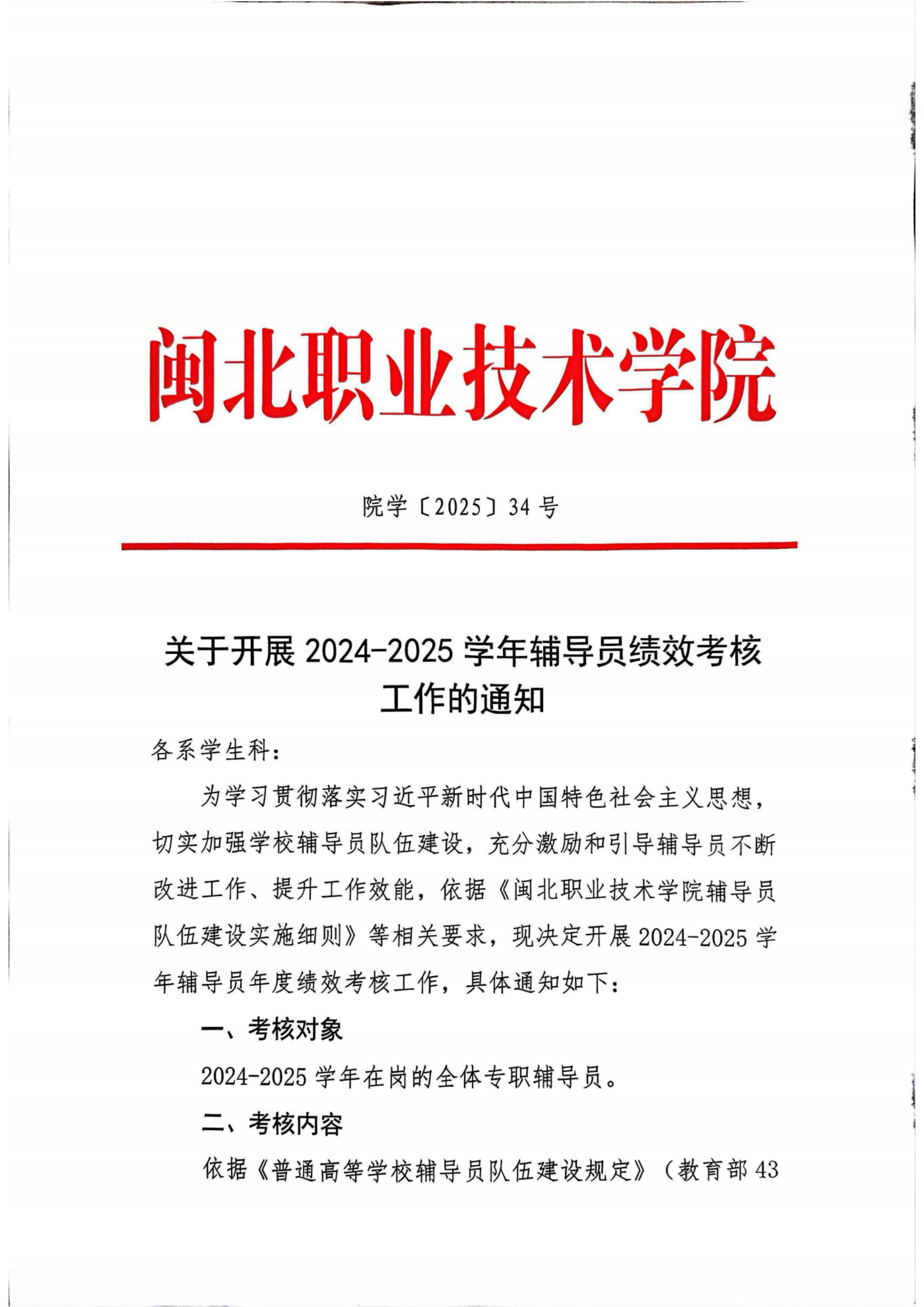 关于开展2024-2025学年辅导员绩效考核工作的通知