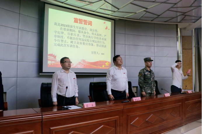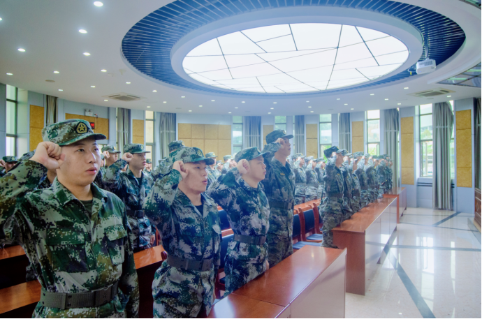 丁寿康介绍了本次军训的整体情况和目标要求,并带领全体军训教官进行宣誓。