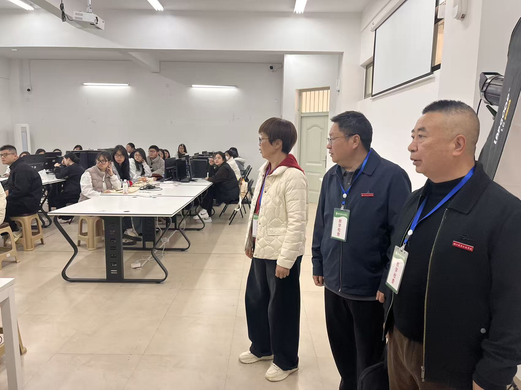 检查过程中,学生工作处相关人员,各系党总支书记、学生科科长及全体辅导员按照既定分工,分赴各教学楼、实训室,深入课堂教学一线开展细致检查。工作人员逐班核对学生实到人数,重点关注学生教材携带、座位就座情况,认真观察学生听课专注度与课堂互动表现,全面、精准掌握新学期学生课堂学习实际状态,同时主动与任课教师沟通交流,及时了解班级整体课堂表现,凝聚学工与教学一线的协同育人合力。