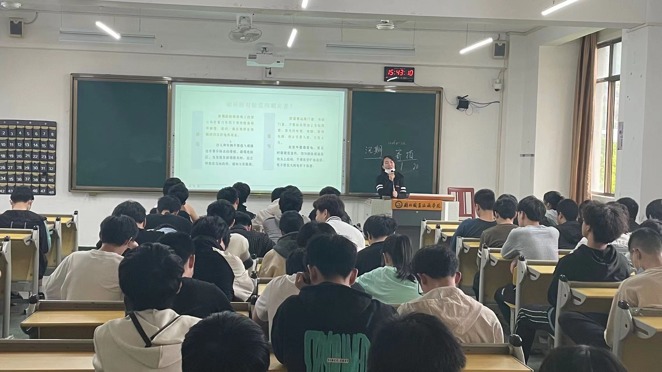 各系通过主题班会、观看视频、宣传海报等多种形式在学生中广泛宣传山洪暴发、山体滑坡、泥石流等自然灾害的防范、避险及预警信号、撤离路线、安置地点、自护自救等内容,让学生牢记心中。同时加大防灭火宣传教育力度和学生用电安全意识及管理,加强隐患排查,进一步提高学生参加户外活动的防火安全意识和避险能力。