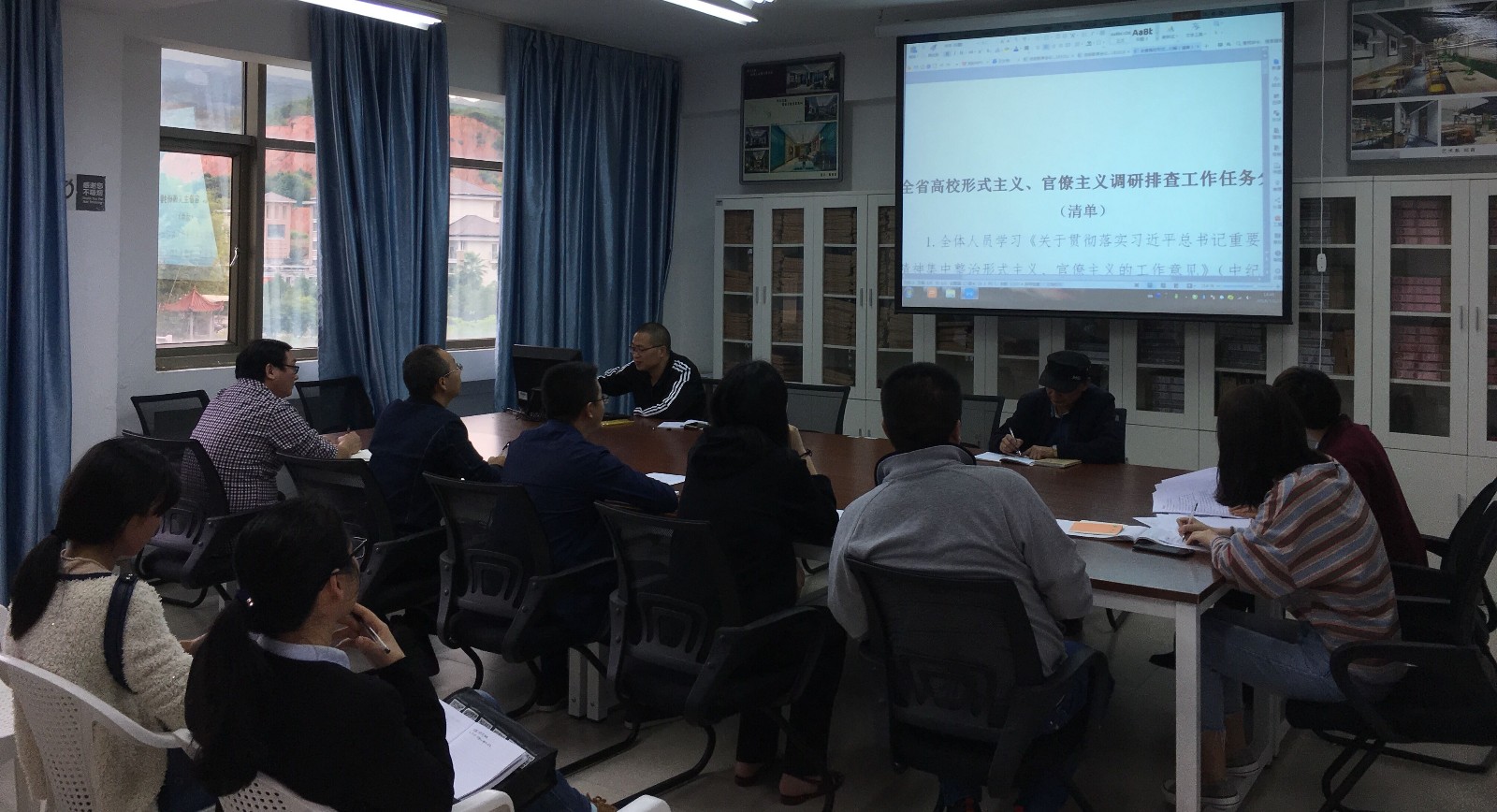 设计系和管理系传达学习学院落实全省高校集中整治形式主义、官僚主义调研排查工作部署会议精神