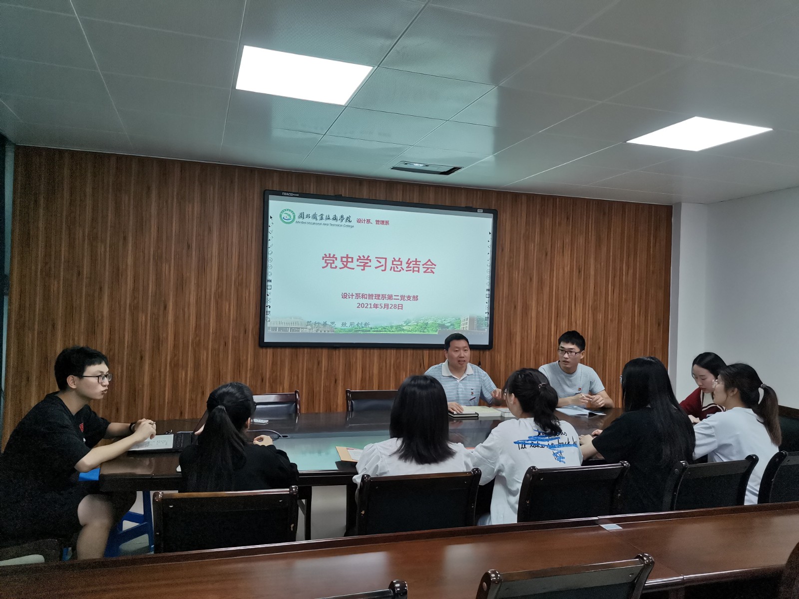 5月28日,设计系和管理系召开党员干部指导入党积极分子开展党史学习教育实践活动阶段性总结会,对5月份各学习小组开展的学习、实践活动进行总结。
