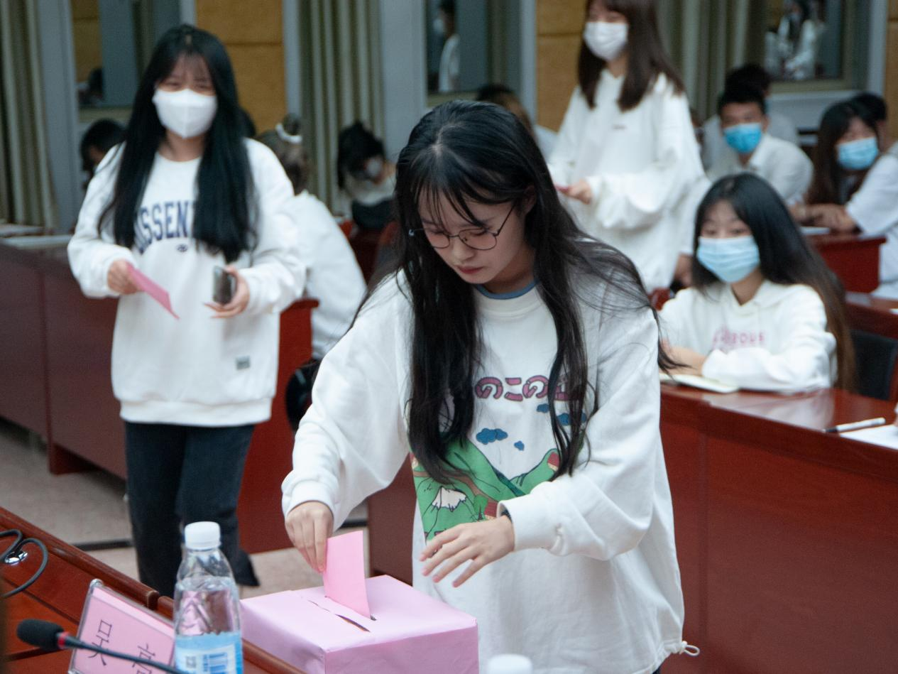 接下来,会议进入了投票选举环节,全体学生代表根据《设计系和管理系第一届学生委员会选举办法》进行无记名投票,差额选举产生了设计系和管理系第一届学生委员会委员,他们分别是:王瑾瑜、毛昕梅、方苑、朱文琛、庄靖愉、杨英真、余清婷、徐慧怡、谢思婷。