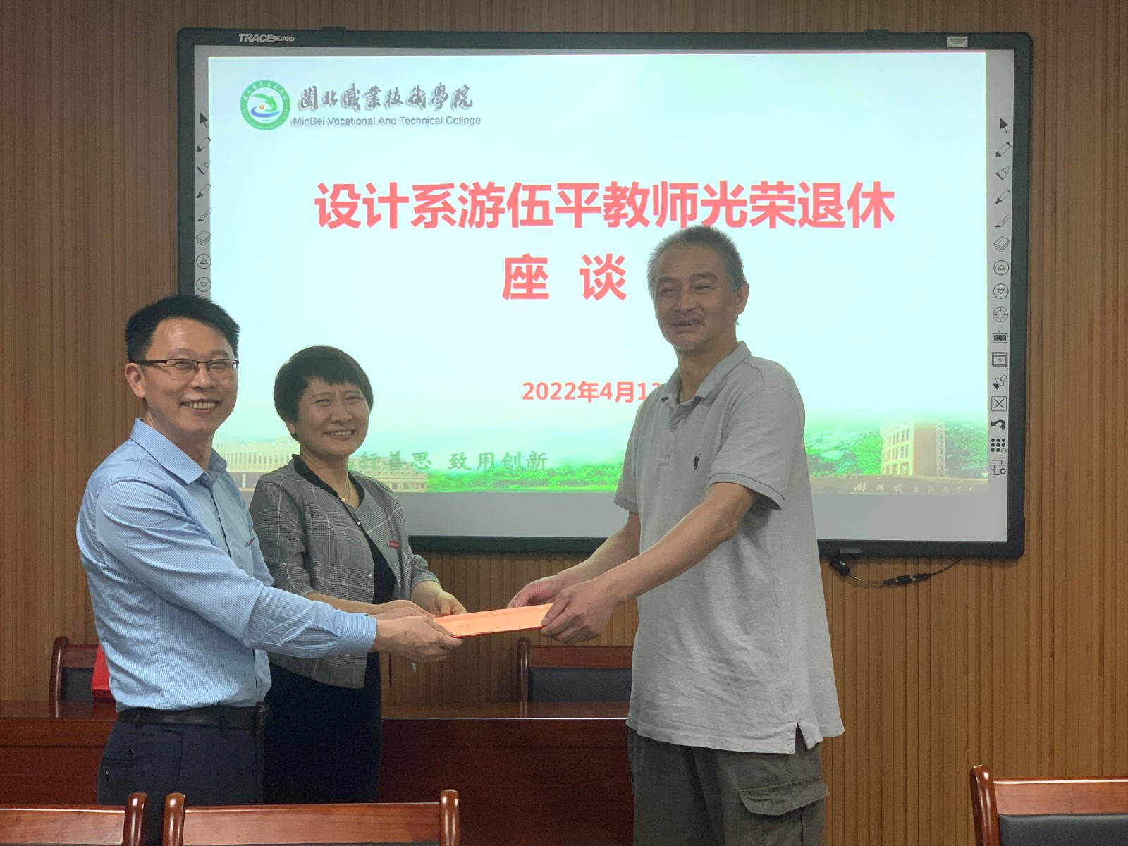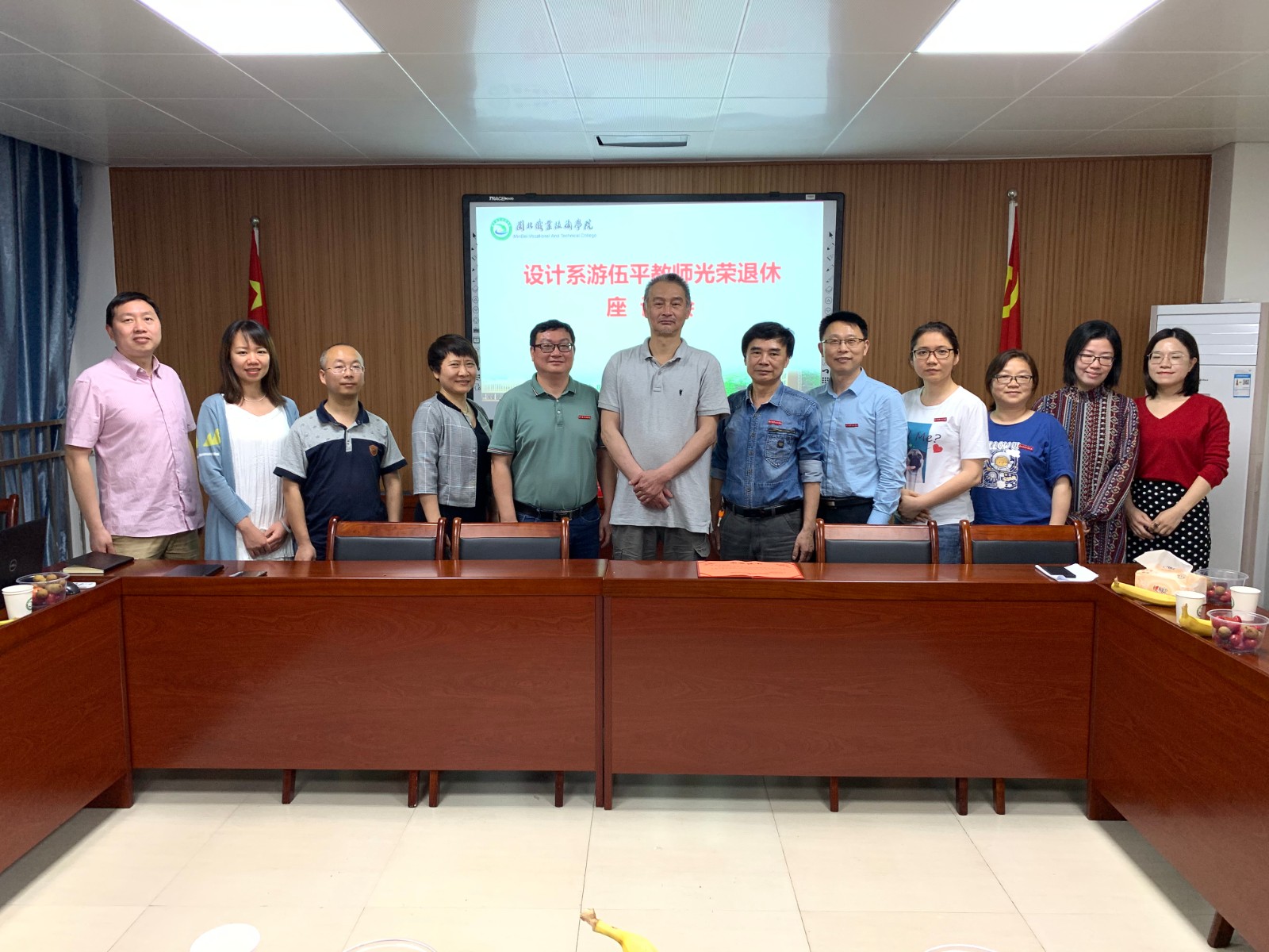 4月13日下午,在Beat365中文官方网站610会议室,举行了一场温馨而又隆重的退休欢送会,院工会、人事处领导及设计系教师代表齐聚一堂,欢送退休教师游伍平同志。