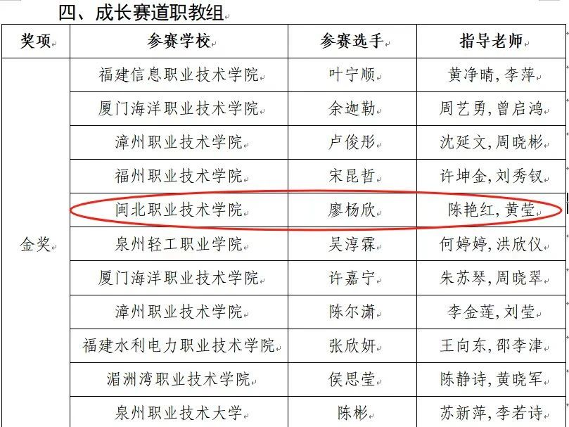 近期在福建农林大学举行第十七届福建省大学生职业规划大赛省级决赛,最终决出成长赛道高教组金奖13名、银奖25名、铜奖38名、优秀奖50名。我系廖杨欣同学在第十七届福建省大学生职业生涯规划大赛中获得成长赛道职教组金奖(并入围国赛)吴紫欣同学获优秀奖,指导老师:陈艳红、黄莹(辅导员)、郑琦。