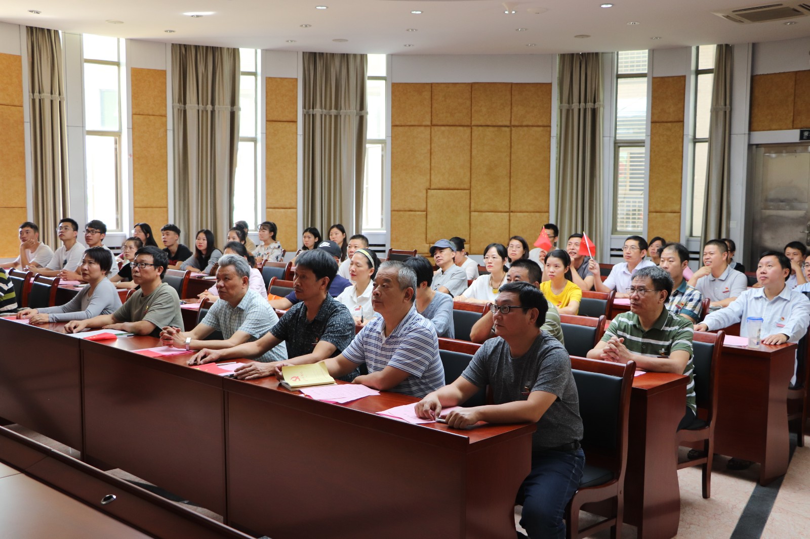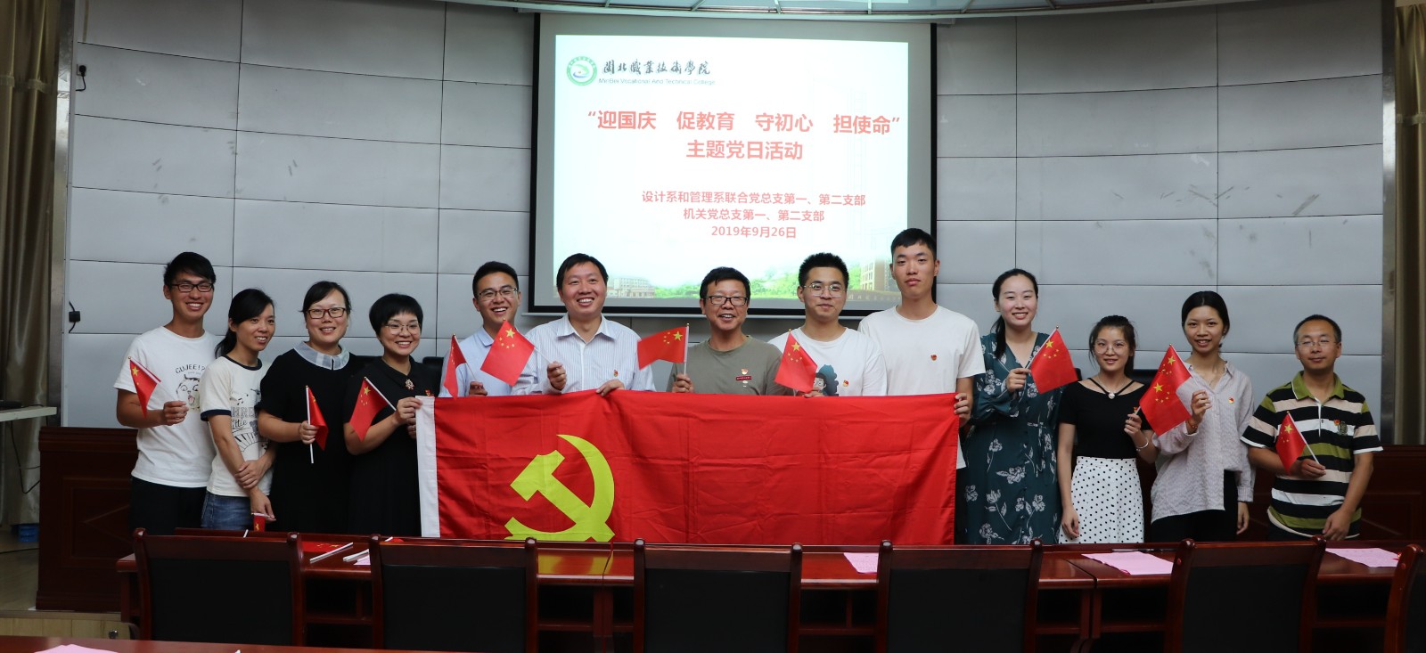 为加强党员理想信念教育,不忘初心,牢记使命,设计系和管理系联合党总支第一、第二支部和机关总支第一、第二支部于9月26日中午,在行政楼一楼报告厅,联合开展“庆国庆、促教育、守初心、担使命”主题党日教育活动。第一、第二支部全体党员参加了活动,院党委高建富书记以普通党员身份出席了教育活动。