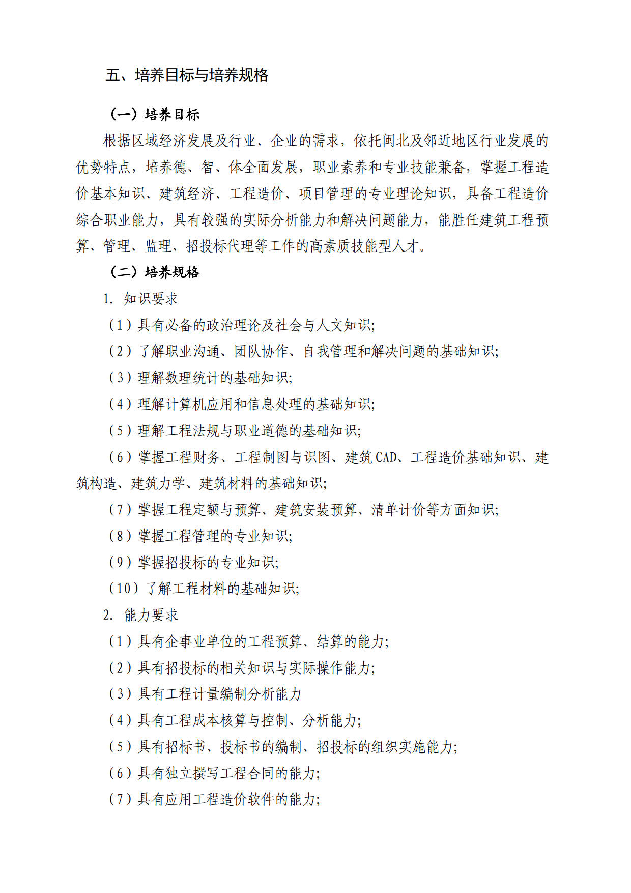 2019级“退役军人”工程造价专业人才培养方案