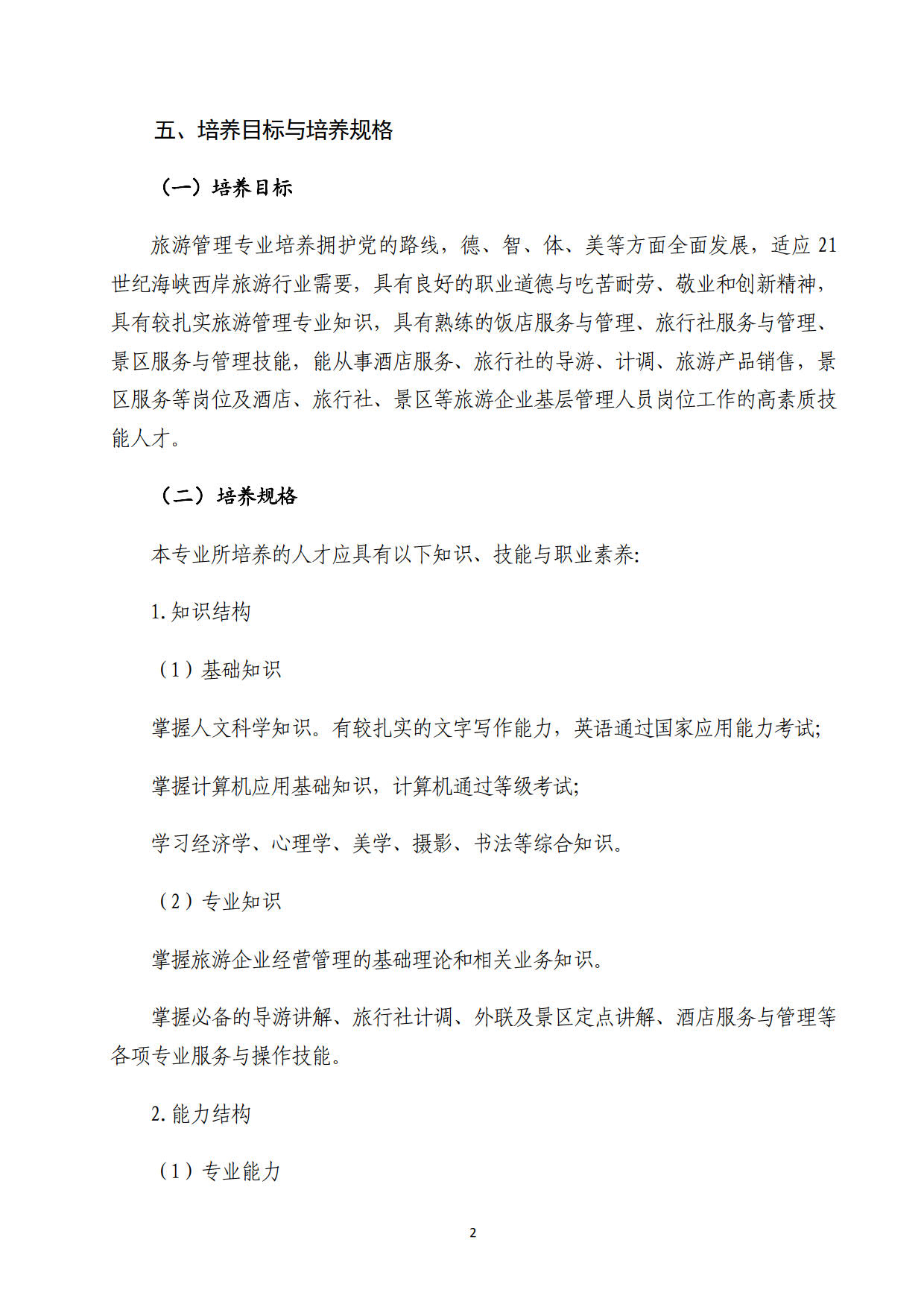 2019级“退役军人”旅游管理专业人才培养方案