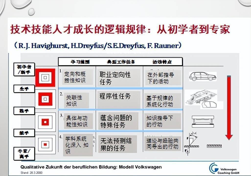 职业能力发展的逻辑规律是什么?如上图案例所示,我们看一下生产汽车的优秀技术人员是怎么成长起来的。