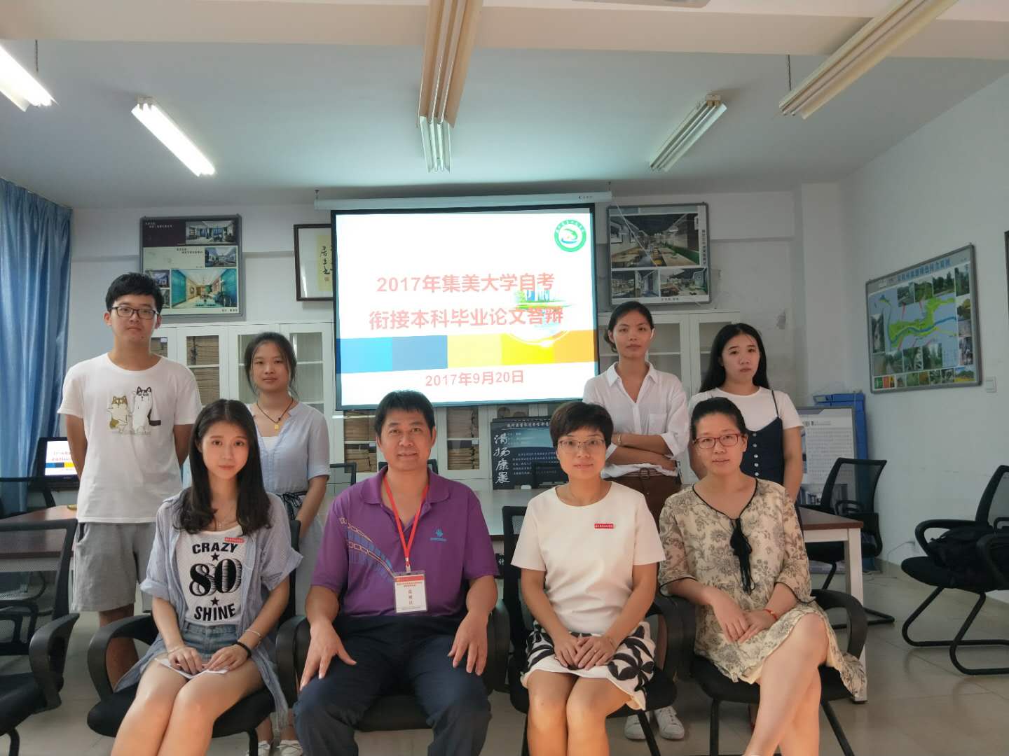 2017年9月20日下午,集美大学继续教育学院与Beat365共同组织衔接自考2017届毕业生专场论文答辩工作在Beat365顺利举行,此次答辩共有7位同学,分为两组。由集美大学黄亚忠老师与Beat365管理系赵晓龙、邓椀升,艺术与传播系郑宵、赖丽琼五位老师组成的答辩小组顺利完成此次答辩工作。