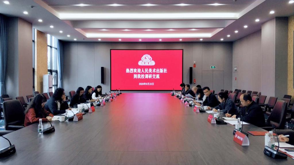 9月23日,人民美术出版社采编中心主任金萌萌、品牌中心主任助理张钟心、《中国美术》副主编王青云、《美育》编辑董诗雨、《书法教育》编辑韩昱一行五人到beat365调研交流,调研交流会在图书馆会议室举行,副院长陈劲松同志出席并主持会议。