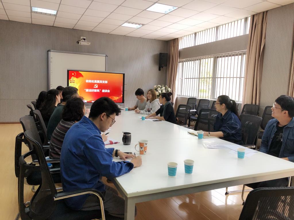 2020年10月8日,教务处直属党支部召开以“树立良好家风、弘扬廉洁齐家”为主题的廉洁家风座谈会,教务处领导、支部委员、部分教职工及其家属出席了座谈会。