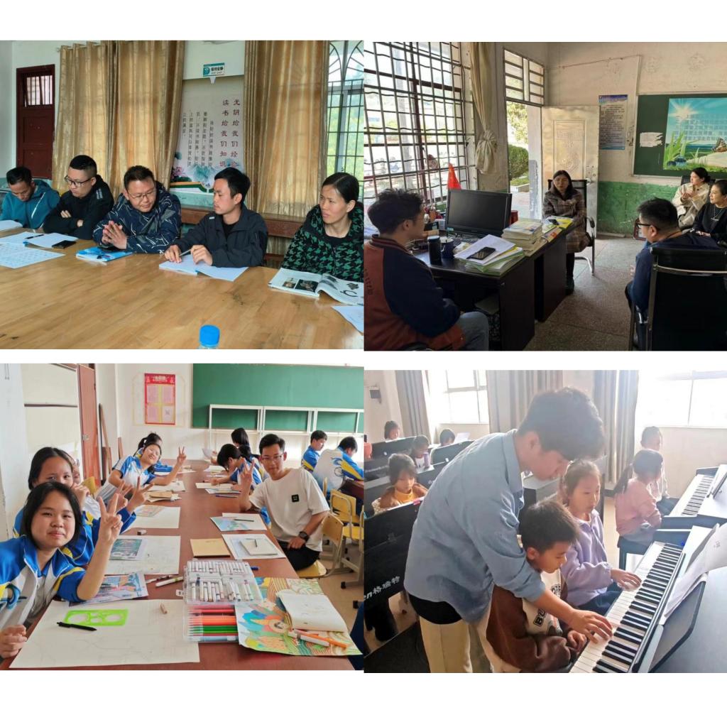 3月以来,beat365师生在富宁县派驻学校开发美育课程20门,组建美育社团4个,支持美育名师工作室2个,宣传报道2次,派驻学生周课时量16—20节,共计1400余节;组织开展学生社团活动18次,派驻学生参与教研活动24次,开展巡回授课11次。派驻师生们牢记习近平总书记指出的:“要全面加强和改进学校美育,坚持以美育人、以文化人,提高学生审美和人文素养”,在后续的行动中高质量完成定向帮扶工作,多样化、特色化落实美育浸润行动,展现青春力量!
